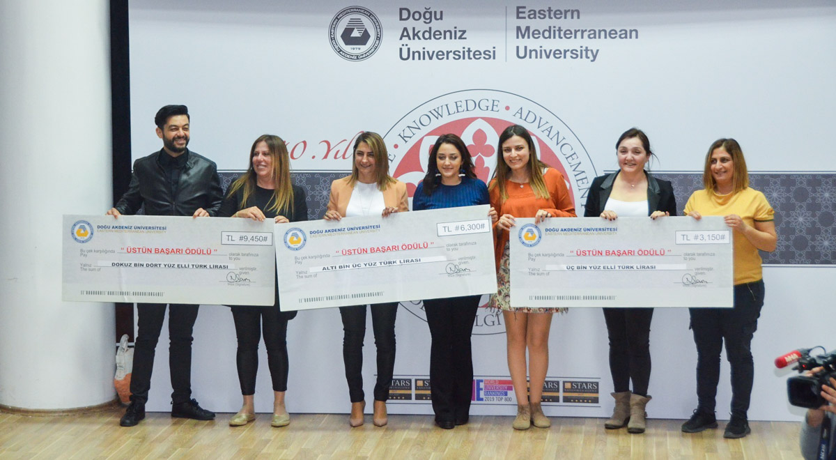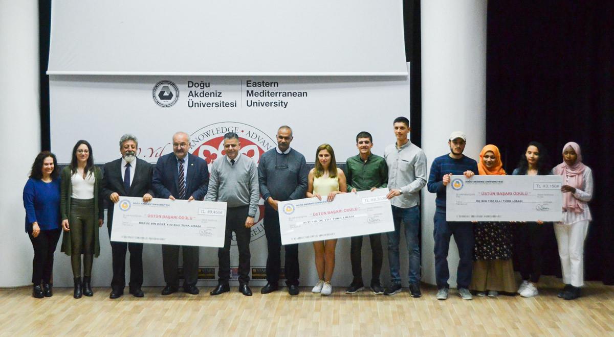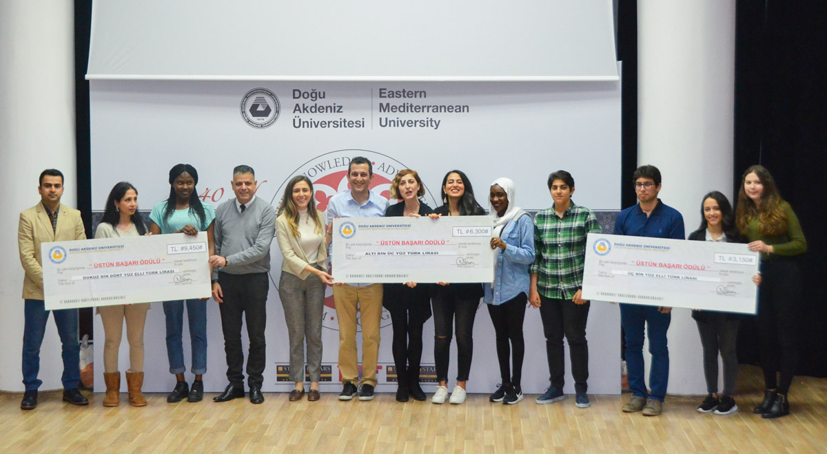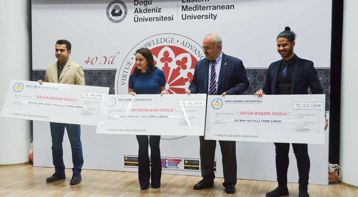 Eastern Mediterranean University (EMU) rewarded the outstanding achievements of students from the Fall Semester of the 2018 – 2019 Academic Year. 130 students who managed to be in the top 10 of their Faculties and Schools were awarded cheques at a ceremony which took place at the Mustafa Afşin Ersoy Hall on Monday, the 8th of April 2019 at 14:30. The ceremony was attended EMU Vice Rector for Academic Affairs Prof. Dr. Halit Tanju Besler and Vice Rector for Student Affairs Prof. Dr. Sonuç Zorlu Oğurlu.